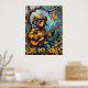 This dynamic painting presents a bear, the "Tree Top Troubadour," sporting a firefighter helmet and sunglasses, masterfully playing an acoustic guitar while sitting on a sturdy branch in a sun-dappled forest. A jar of honey hangs above, catching the sunlight. The thick, expressive brushwork adds a tangible quality to the scene, making the "Love My Honey" message resonate with the peaceful charm of the forest.