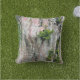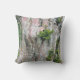 THIS OUTDOOR THROW PILLOW FEATURES A CLOSE-UP VIEW OF AN INTERESTING TREE TRUNK THAT HAS KNOT-HOLES WITH MOSS GROWING OUT OF THEM AND A BEAUTIFUL PINK AND GREY COLORED TEXTURED BARK.