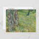 A fine art postcard with the post-impressionist painting by the Dutch artist Vincent van Gogh (1853-1890), Tree Trunks in the Grass (1890). A landscape of a grass meadow with wildflowers and abstract colourful trees.