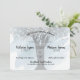 Whimsical and fun tree with string lights and carved heart rustic smokey blue wedding invitation with typography style text. Blue watercolor background and charming monogram in heart on reverse side.
