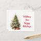 Pretty, vintage picture of a Christmas tree with presents, is featured on this postcard for the Holidays. With message, "Wishing You Happy Holidays", on the front of the postcard. The back is blank for you to write your own personal message. A sweet postcard to keep in touch with family and friends at Christmas time!