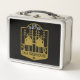 This is a standard metal lunchbox that appears to work just fine. We designed this box ourselves with an uploaded photo and custom text on the front and back. It looks absolutely beautiful except the front of the lunchbox is not centered like it shows in the photo. The print borders don't align with the inset flat part of the box where the preview photo online showed it perfectly centered in there. The back looks nice and centered though.