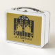 This is a standard metal lunchbox that appears to work just fine. We designed this box ourselves with an uploaded photo and custom text on the front and back. It looks absolutely beautiful except the front of the lunchbox is not centered like it shows in the photo. The print borders don't align with the inset flat part of the box where the preview photo online showed it perfectly centered in there. The back looks nice and centered though.