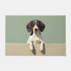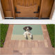 The soft woodland green background adds a natural and refreshing touch, perfect for welcoming entryways. Designed with extra space at the top and bottom, it allows easy personalization with names, welcome messages, or custom text—making it ideal for unique dog-themed doormats and thoughtful gifts.