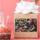 This festive design captures the joyful spirit of the holiday season, featuring an adorable dogs.Nestled in a winter wonderland, complete with a decorated Christmas tree, and beautifully wrapped presents. adding a magical touch to the scene, while the vibrant colours of the holiday decorations create a warm and cheerful atmosphere.