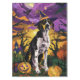 Embrace the Halloween spirit with this enchanting design featuring a cute dog in a witch hat surrounded by carved pumpkins. Perfect for adding a touch of spooky charm to your festive celebrations.