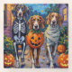 Adorable Treeing Walker Coonhounds dressed in playful Halloween costumes carry pumpkin buckets while trick-or-treating under the moonlit sky. This festive design highlights the breed’s tricolor coat, alert stance, and adventurous personality, perfectly capturing the spooky yet fun atmosphere of Halloween night. A charming celebration for Treeing Walker Coonhound lovers, dog enthusiasts, and Halloween fans alike.