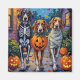 Adorable Treeing Walker Coonhounds dressed in playful Halloween costumes carry pumpkin buckets while trick-or-treating under the moonlit sky. This festive design highlights the breed’s tricolor coat, alert stance, and adventurous personality, perfectly capturing the spooky yet fun atmosphere of Halloween night. A charming celebration for Treeing Walker Coonhound lovers, dog enthusiasts, and Halloween fans alike.