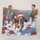 Treeing Walker Coonhound Snow with Christmas Hat Fleece Blanket
