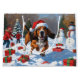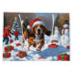 A spirited Treeing Walker Coonhound runs happily through the snowy winter scene, wearing a festive red Christmas hat. This lively design highlights the breed’s sleek coat, athletic build, and determined personality while capturing the warmth and joy of the holiday season. A heartwarming winter moment full of festive cheer.