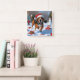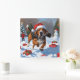 Treeing Walker Coonhound Snow with Christmas Hat Square Wall Clock