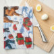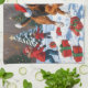 Treeing Walker Coonhound Snow with Christmas Hat Tea Towel