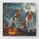 Unleash the spooky spirit with this eerie Halloween design featuring a pack of dogs under a dark, moonlit sky, surrounded by flying bats and glowing pumpkins. Perfect for those who love a touch of frightful fun with their furry friends!