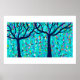 Poster of oil painting: dark leafless trees against colourful impressionist blue abstract background. Painted and designed by iolantesdesigns :-)!
