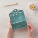 Trees and lights stained teal blue winter wedding all in one invitation