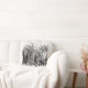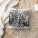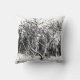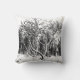 Throw pillow in a Winter scene of snow-covered trees with a winter woodland background - digitally enhanced photography in black and white