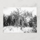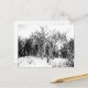 Postcard with a Winter scene of snow-covered trees with a winter woodland background - digitally enhanced photography in black and white