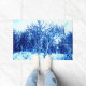 Doormat in a Winter scene of snow-covered trees with a winter woodland background - digitally enhanced photography in shades of cobalt blue