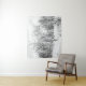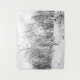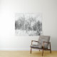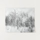 Tapestry in a Winter scene of snow-covered trees with a winter woodland background - digitally enhanced photography in black. white and silver grey