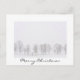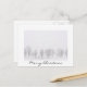 Stylish christmas card with a row of barren trees during a blizzard in winter in a completely snow white world background. This is a colour image, although it looks like b/w. It has a white border and the tekst: 'Merry Christmas'.