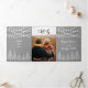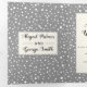 White trees and string lights on grey kraft paper rustic winter tri-fold wedding invtation. It features white trees and string lights on kraft paper on the cover and the outside flap. The inside includes your text on frames with snowflake pattern around them, while the outside back holds the photo and the initials of the couple.