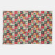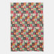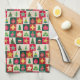 Trees, ornaments, and stars on red, green and ecru squares creates a cute and fun kitchen towel with a mid-century aesthetic. Perfect for your holiday home!