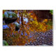 Original nature photograph of a tree with brilliant golden leaves, reflected in a pond, with stones framing the scene. Lakeside Garden Centre, Lake Merritt, Oakland California