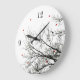 Custom wall clock with minimalist nature theme featuring black and white bare trees silhouette and flying bird. Numerals and red dots can be customised.