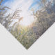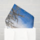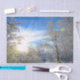 Snow covered forest trees with blue sky clouds white winter woodland scenery craft decoupage tissue paper. Image copyright Marg Seregelyi Photography.