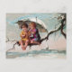 This unusual Victorian postcard has two thinly dressed children perched in a tree keeping company with several small birds. They are surrounded by a frozen landscape. We can only imagine the intention of the artist. A version with the original type is offered along with an option for your personal message. In keeping with the antique style, the reverse side of the postcard also features a nineteenth century design.
