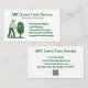 A tidy and professional lawn care business card featuring a landscaper trimming a shrub. Perfect for businesses that specialise in shaping, pruning, and detailed yard aesthetics. Includes a clear list of services to attract attention and build trust.