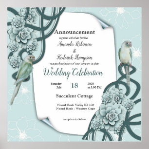 Mint Blue Pine Green Succulents Poster