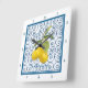 Trellis Scroll Lemon Branch Personalized Blue Square Wall Clock