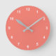 Trend Colour Coral Sunset & White Numbers. Modern and stylish solid coloured round clock with numbers as minimalist markers for the hours.