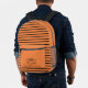 Modern and stylish Backpack with decorative lineart element in tattoo style and customisable name in classic black. .
