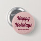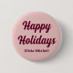 This elegant blush pink coloured button is the perfect way to add a touch of festive cheer to your holiday outfit. The text "Happy Holidays" is customisable and also the name can be personalised.