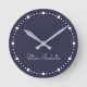 Trend Colour Navy Blue White Dots Name Round Cloc Clock