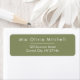 Minimal return address labels in solid reed green colour.