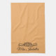 This modern and stylish kitchen towel with decorative lineart element in tattoo style and customisable name in classic black script font, adds a vibrant touch to your kitchen attire.