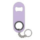Modern and stylish Keychain Bottle Opener with 2-letter monogram in a modern font and light purple colour.