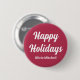 This elegant, minimalist, muted berry pink coloured button is the perfect way to add a touch of festive cheer to your holiday outfit. The text "Happy Holidays" is customisable and also the name can be personalised.