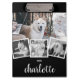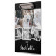 Trendy 4 Photo Collage Script Name White Black Clipboard
