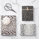 Trendy fashionable animal print wrapping paper feature three style of leopard print , cheetah print in earth tone, black, and white.