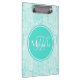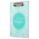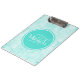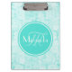 Trendy Aqua Mint Crackle Pattern With Monogram Clipboard