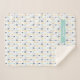 This blanket features an arrow pattern in an aqua mint, navy, gold, and grey.