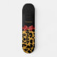 Trendy Black and Gold Leopard Print Red Ribbon Bow Skateboard