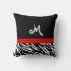Trendy Black and Red Zebra Stripe Monogram Pillows