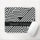 Trendy Black and White Geometric Stripes With Name Mouse Pad