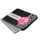 A stylish women's fashion Laptop Sleeve 15 inch with a trendy black and white giraffe pattern embellished with a girly pink daisy flower. Personalise by adding your name to this modern design. Perfect for the chic fashionista.
