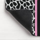 A stylish women's fashion mousepad with a trendy black and white giraffe pattern embellished with a girly pink daisy flower. Personalise by adding your name to this modern design. Perfect for the chic fashionista.